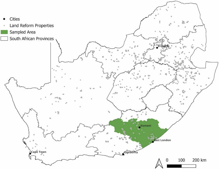 During our study in Addo-Amathole Biodiversity Economy Node we interviewed 19 land reform beneficiaries. It is one of the government’s focal areas in the Eastern Cape for promoting the wildlife economy. It also overlaps with one of the “mega living landscapes” in South African National Parks’ new Vision 2040. The farms in our study cover nearly 50,000ha. They represent two-thirds of the land reform beneficiaries in the province who aspire to be part of the wildlife economy.