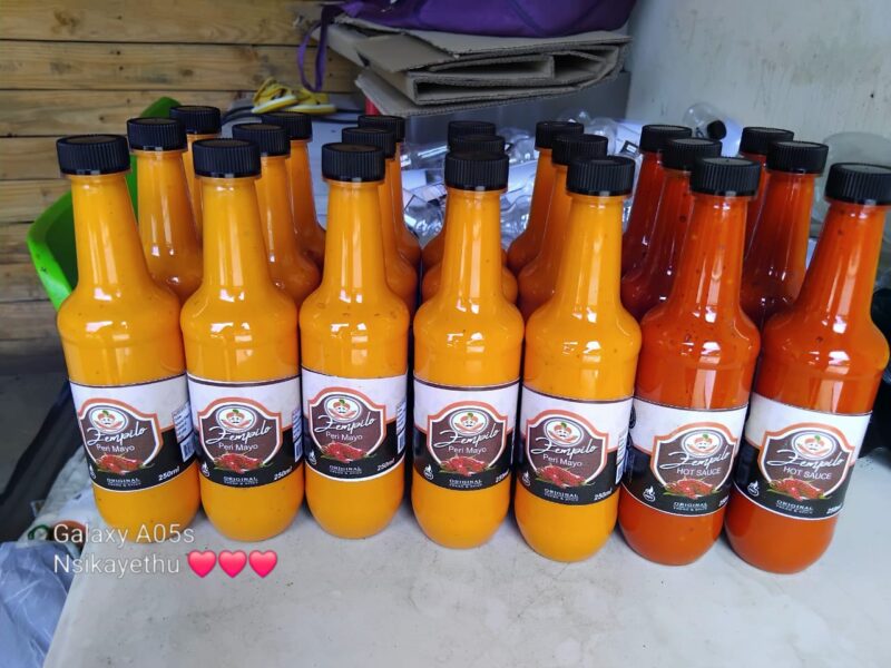 Zempilo General Trading offers three sauce varieties: peri-peri mayo, peri-peri sauce, and hot sauce. Ntimbane says these are made with secret spices to blend the fresh chillies with oil uniquely.