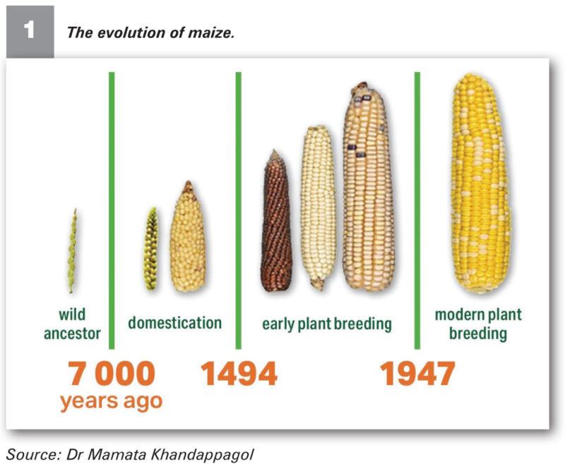Kgatle describes how maize and other staple crops have evolved over thousands of years through domestication and breeding, moving from wild plants to today’s high-performing commercial varieties.