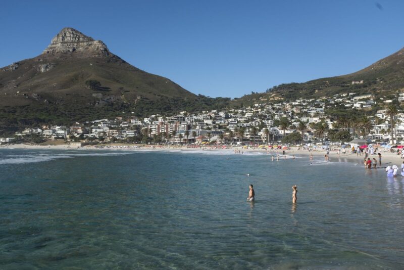 Tourists enjoy the late afternoon sun as they visit Camps Bay beach in Cape Town, South Africa. (Photo: EPA-EFE / Kim Ludbrook)